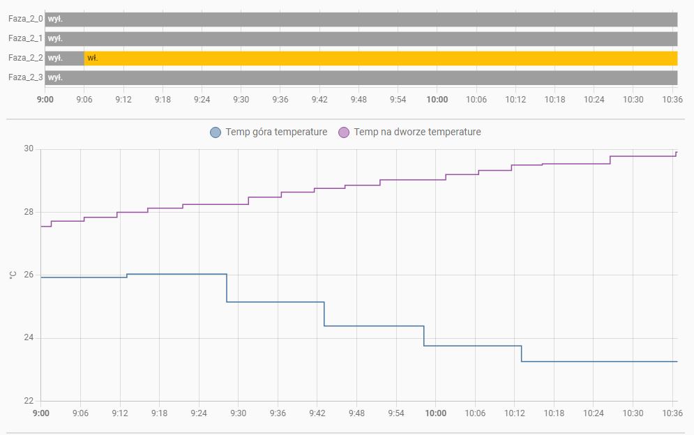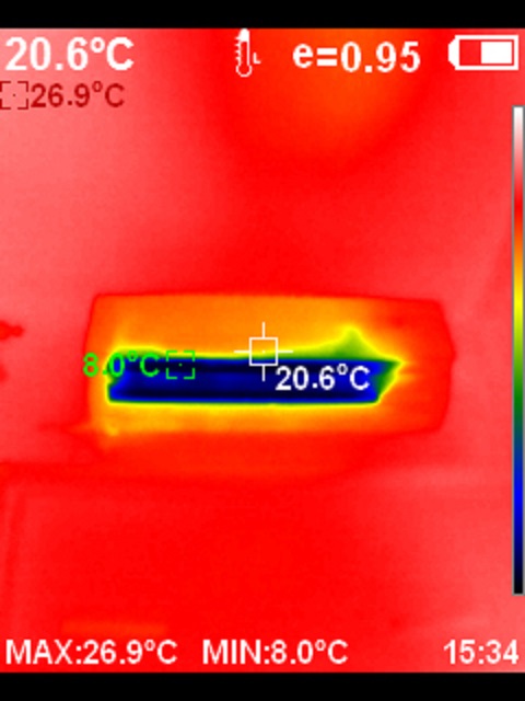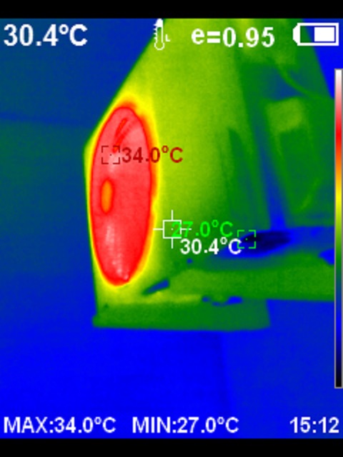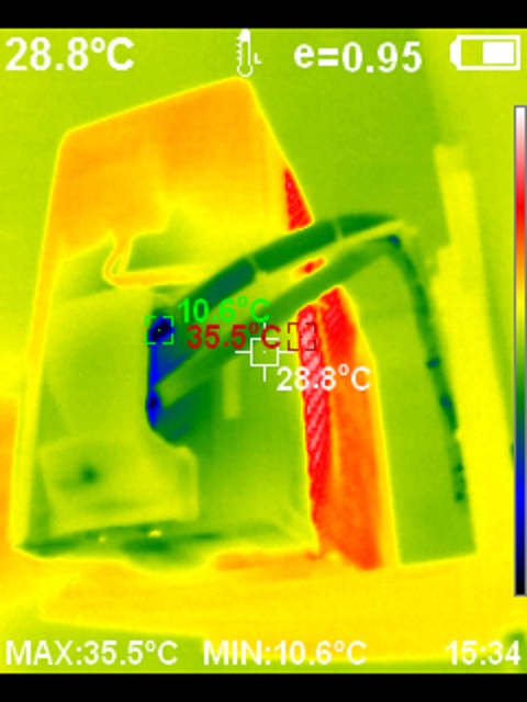 Na początek podgrzeje czujnik powietrza jednostki zewnętrznej bo z tego co widzę wystaje na zewnątrz obudowy. Dzisiaj jest bardzo ciepło na dworze i klima działa dobrze. Na test poczekam do chłodniejszego dnia. Niżej zdjęcia z pracy klimy gdy pracuje właściwie.
