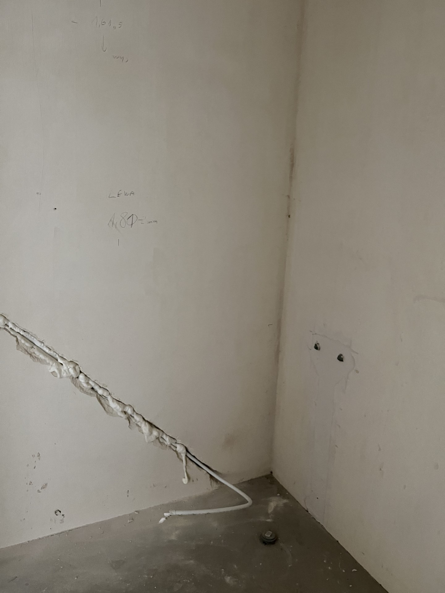 1. Pofalowana rurka odprowadzenia skroplin za jednostką wewnętrzną. Rurka na długości od tacki do wejścia do ściany jest delikatnie pofalowana, przez co tworzy lekki syfon. Czy to może być problemem braku odprowadzenia? Zapach wydaje mi się, że może pochodzić stąd. Woda stoi sobie w zagłębieniach i po pewnym czasie oddaje zapach wilgoci.