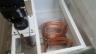 Chłodzenie oleju w obrabiarce. Zastanawiam się czy jestem w stanie zwiększyć sprawność układu chłodniczego. Czy należy zwiększyć jeszcze powierzchnię parownika – czyli spirali rur miedzianych ( na zdjęciu) ? . Użyłem agregatu skraplającego Cubigell CMS34TB3M, zawór TES2 -40/+10 TZR skręcano-lutowany bez MOP Dysza 03 do T/TE2 . Sam wykonałem parownik. Układ chłodzenia oleju w obrabiarkach szlifujących frezy. Wymagana stała temperatura oleju chłodzącego proces skrawania. Temperatura oleju ma być 23 st C. plus minus jeden stopień. Wanna z olejem ma rozmiar 30 cm wysokości (poziom oleju) Olej w wannie cały czas krąży w obiegu zamkniętym. Wanna 80 cm szerokości i 60 cm głębokości. Zanurzona w nim spirala z dwóch rur fi 12 mm każda po 11 kółek jak na zdjęciu. Razem około 24 metrów rury w dwóch równoległych obiegach. Dokonałem pomiarów na pracującym układzie. Podłączone Testo z sondą temperaturową na powrocie z parownika. Odczyt co 2 minuty : Ciśnienie , przegrzanie (K) , temperatura To. Umieściłem pomiary w tabeli. W skrócie średnia z pomiarów to ciśnienie ssania od 4,6 do 4,16 Bara, Przegrzanie od 1,4 do 0,9 , Temperatura To od 1,9 st C do minus 4,8 st C . Temperatura oleju od 24 do 22 st C . Czynnik R404